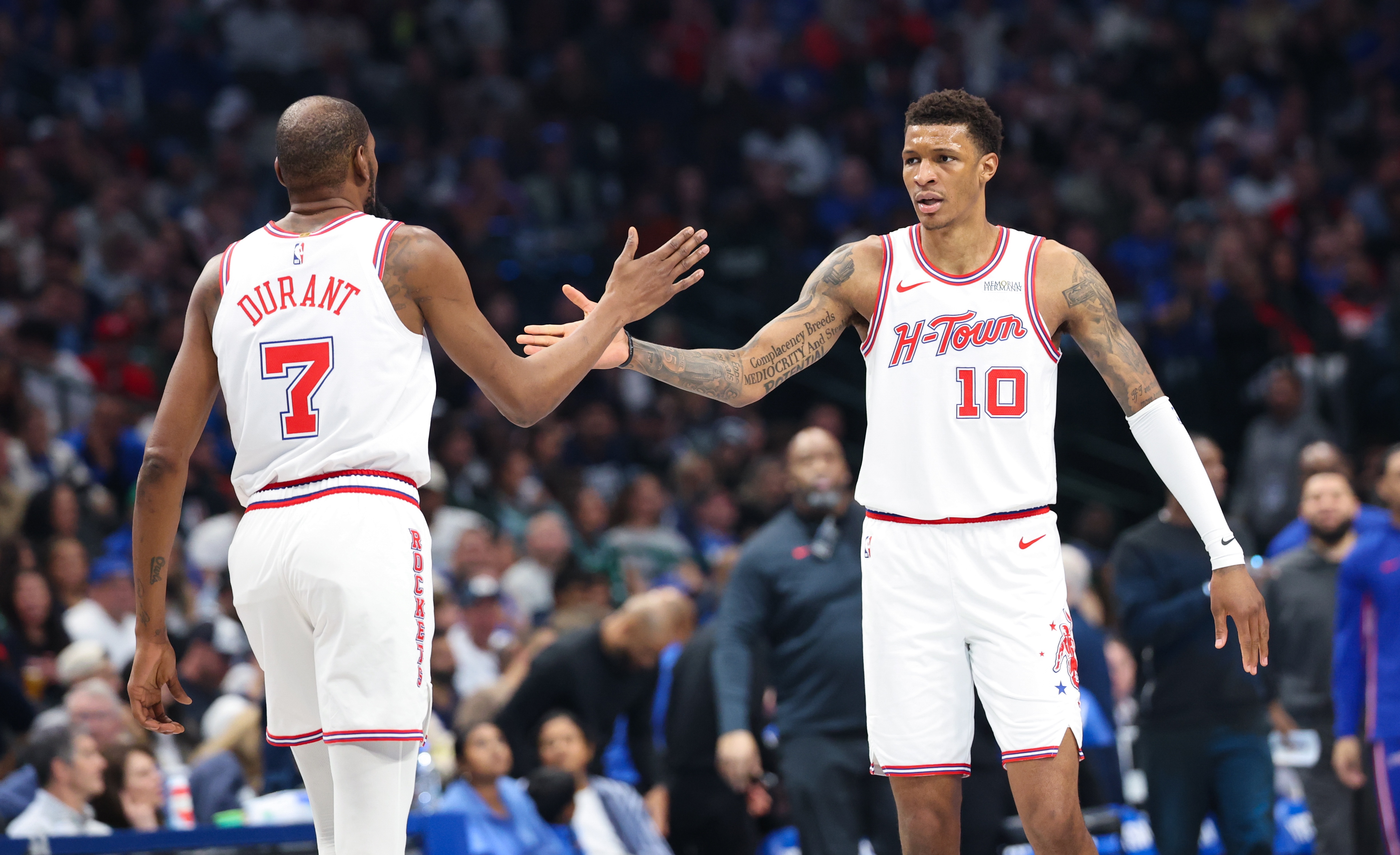 谈到小贾巴里·史密斯的表现,他说:“对手包夹凯文(杜兰特)、重点盯防凯文,就一定会有队友处于空位,你必须站出来把球投进。今晚我们只进了7个三分,他(贾巴里)就投中了2个,而且都是在关键时刻。很高兴看到他保持自信和侵略性,没有犹豫,他也因此收获了回报。”